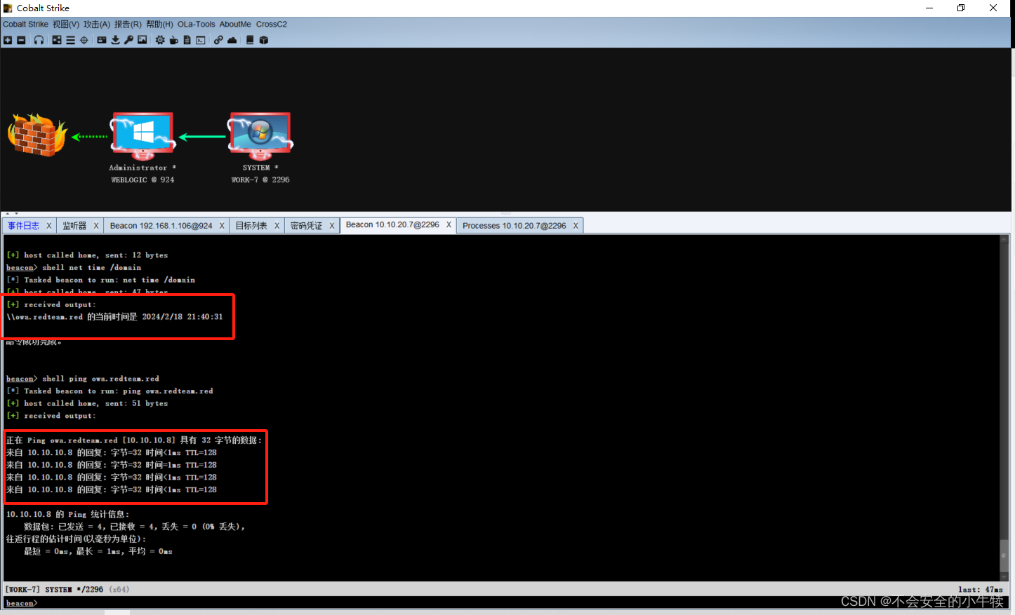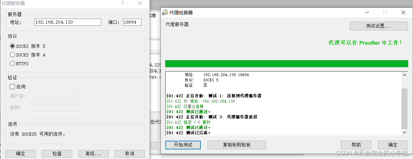 使用cs配合Proxifier开启socks代理,测试连接成功。