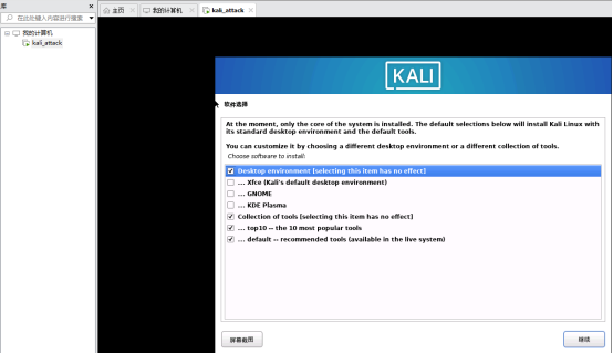 如果需要使用桌面图形化版本,就需要把第2项勾选上,Xfce…【推荐新手,不喜欢纯命令行模式的小伙伴进行安装】