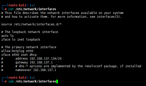 如果配置Static,则修改并配置对应地址:iface eth0 inet static