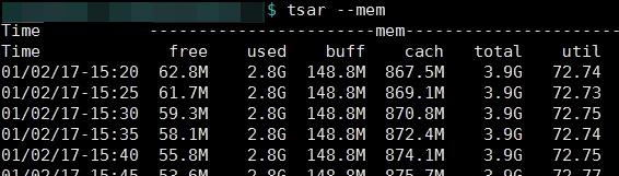 tsar是阿里开源的采集工具。很好用, 将历史收集到的数据持久化在磁盘上,所以我们快速来查询历史的系统数据。当然实时的应用情况也是可以查询的啦。大部分机器上都有安装。
