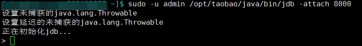 sudo -u admin /opt/taobao/java/bin/jdb -attach 8000.