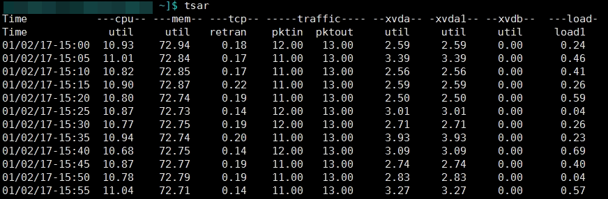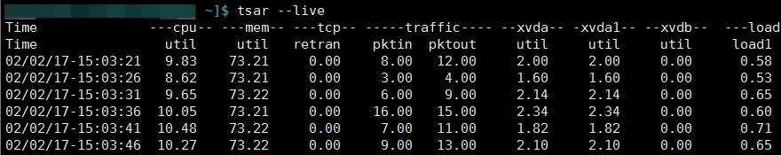 tsar --live ###可以查看实时指标,默认五秒一刷