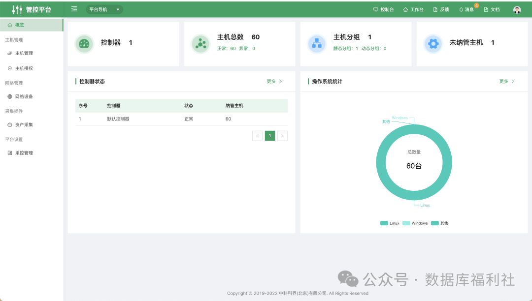 管控平台: 完成对运维对象的纳管操作,通过SSH或者Agent两种方式进行控制。