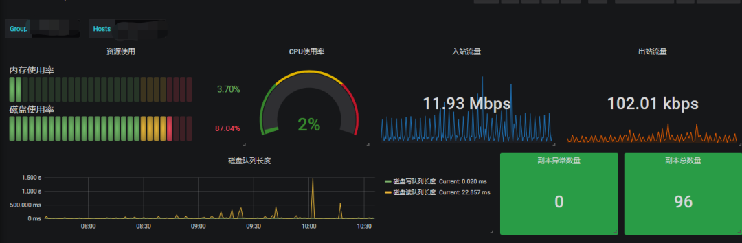 接入Grafana之后的监控页面可以定制化为下图。