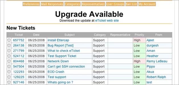 eTicket是一个基于PHP的工单系统,可以通过电子邮件(pop3 / pipe)或网络表单接收工单。它还提供了许多功能的工单管理器。 一个理想的,易于使用和安装任何网站的帮助台解决方案。 eTicket提供了许多功能,并且可以很容易地植入你的网站的外观和感觉。