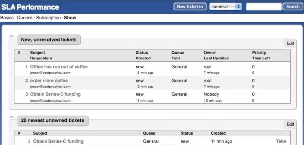 RT是一个企业级问题跟踪系统,它使一群人智能和高效地管理由用户社区提交的任务,问题和请求。 RT以面向对象的Perl编写,是一个高级别,便携式,独立于平台的系统,可简化组织内部的协作,并使他们能够轻松地照顾客户。 RT管理关键任务,如企业关键应用程序所需的识别,优先级排序,分配,解决方案和通知,包括项目管理,服务台,NOC票务,CRM和软件开发。