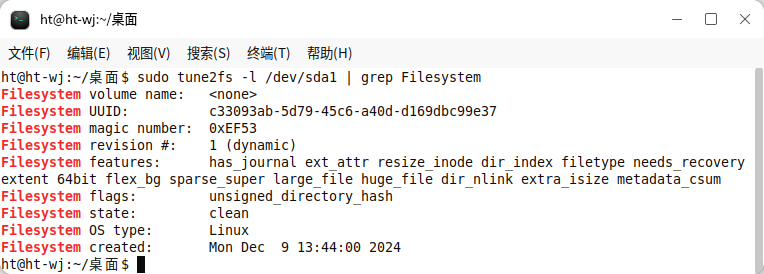 sudo tune2fs -l /dev/sda1 | grep Filesystem