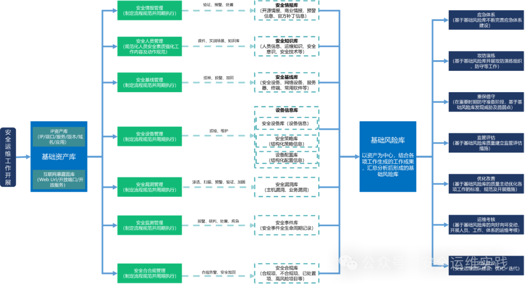 安全运维例行操作涉及资产管理流程、风险管理流程、事件管理流程、检测巡检流程、监测研判流程、合规管理流程、活动管理流程、变更管理流程等重要流程的流转;