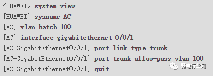 配置AC连接Switch_A的接口GE0/0/1加入VLAN100。