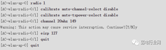 关闭AP射频1的信道和功率自动调优功能,并配置AP射频1的信道和功率。