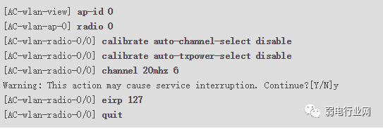 关闭AP射频0的信道和功率自动调优功能,并配置AP射频0的信道和功率。