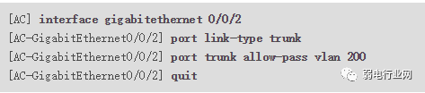 配置AC连接Router的接口GE0/0/2加入VLAN200。