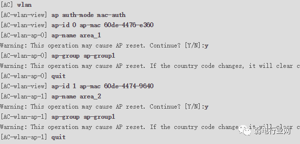 在AC上离线导入AP,并将AP加入AP组“ap-group1”中。假设AP的MAC地址为60de-4476-e360和60de-4474-9640,并且根据AP的部署位置为AP配置名称,便于从名称上就能够了解AP的部署位置。例如MAC地址为60de-4476-e360的AP部署在1号区域,命名此AP为area_1。