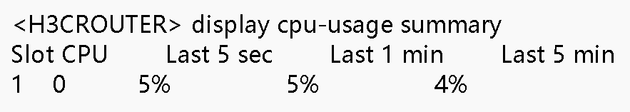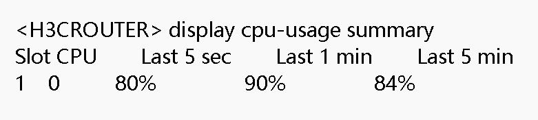 [H3C]display cpu-usage //显示CPU利用率的统计信息,用于查询CPU占用率高的任务[H3C]display cpu-usage history //以图形方式显示CPU利用率统计历史信息