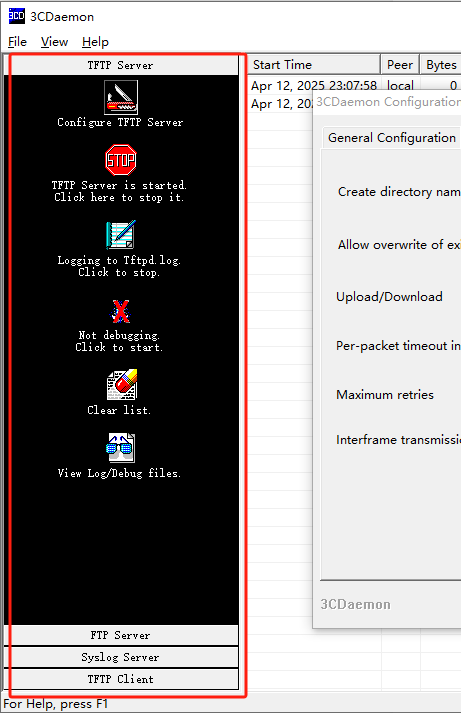 推荐原因:免安装,配置简单,方便新手朋友上手。3CDaemon是一款轻量化的集成FTP/TFTP/SYSLOG Server工具,因为不需要安装就可以使用,部署简单。如在设备需要升级、拷贝设备日志信息等场景时候,这时就需要临时搭建一个的FTP/TFTP服务器。