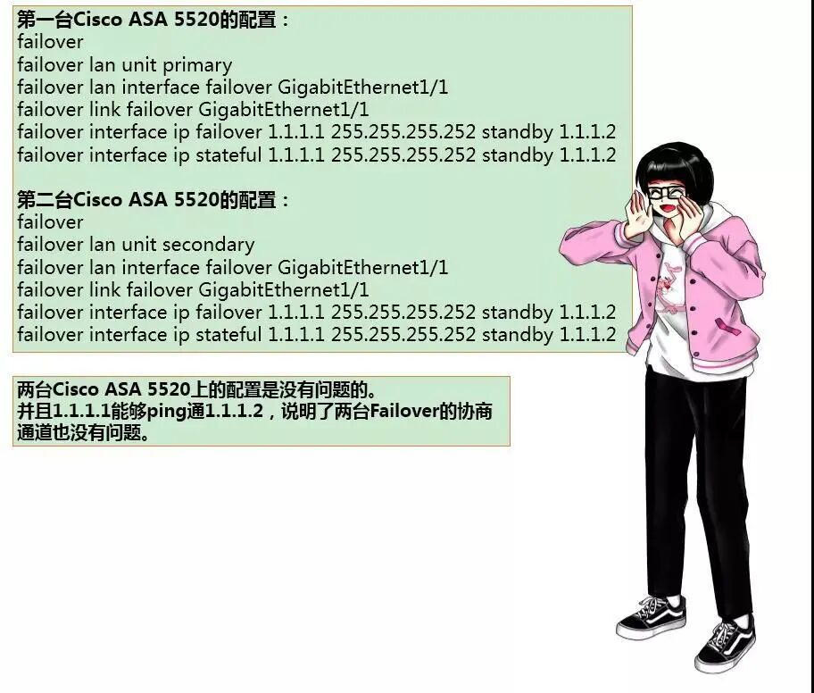 应聘者A毕竟有经验,所以他先检查了一下Cisco ASA 5520上的连接线,先确认不是Failover线连接质量的问题。