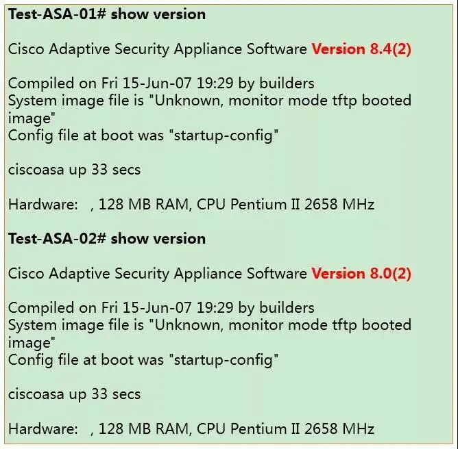 那应该是怎么回事呢?应聘者A马上想到了,配置Failover,需要两台Cisco ASA的硬件型号和软件版本都必须完全一致。而他又听紫竹说过:这两台Cisco ASA之前的Failover一直都是正常的,只是经过了一次重启以后就不行了的。那重启以后,既然没有配置上的变动,那是怎么回事呢?于是,他马上查看两台Cisco ASA的IOS软件版本: