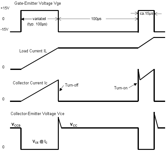 顾名思义,双脉冲测试就是给被测器件两个脉冲作为驱动控制信号,如图1所示。第一个脉冲相对较宽,以获得一定的电流。同时第一个脉冲的下降沿作为关断过程的观测时刻,而第二个脉冲的上升沿则作为开通过程的观测时刻。