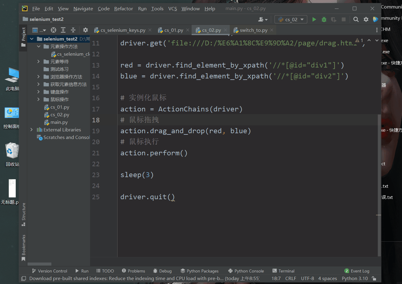 注意:driver.close() ,当前关闭的是主窗口,只有完成页面切换才可以关闭当前新的页面