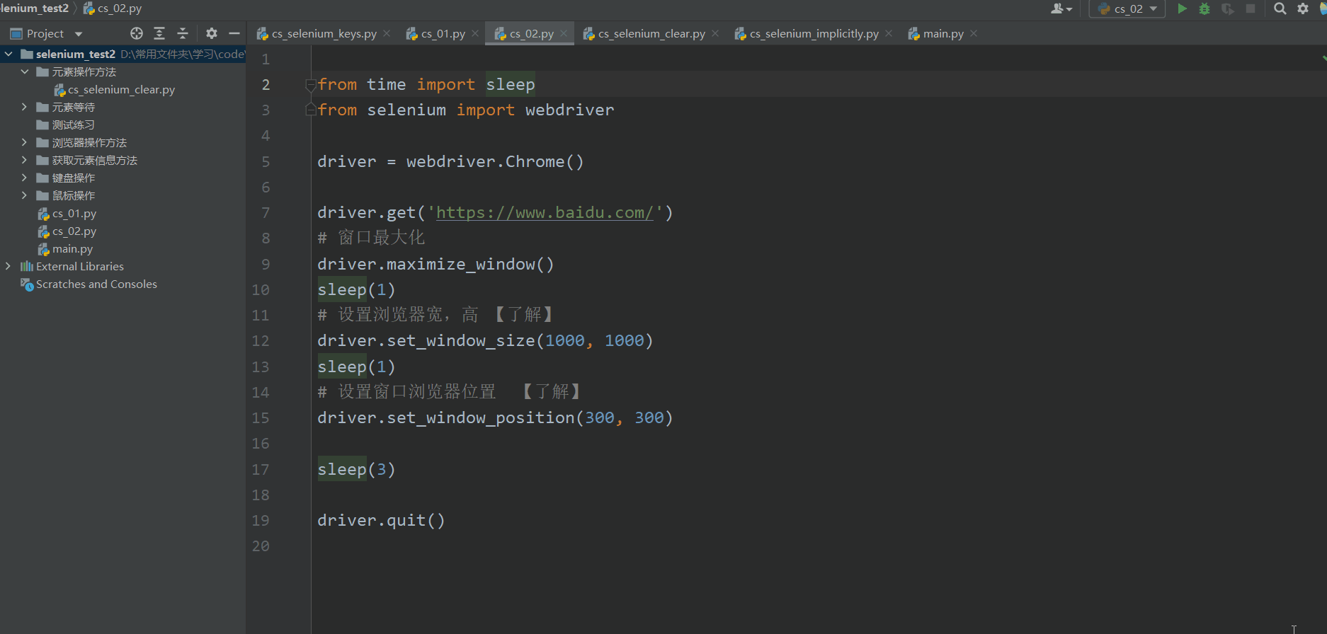 2、driver.set_window_size(w,h) # 设置浏览器大小 单位像素 【了解】
