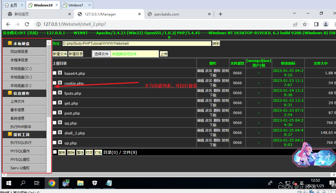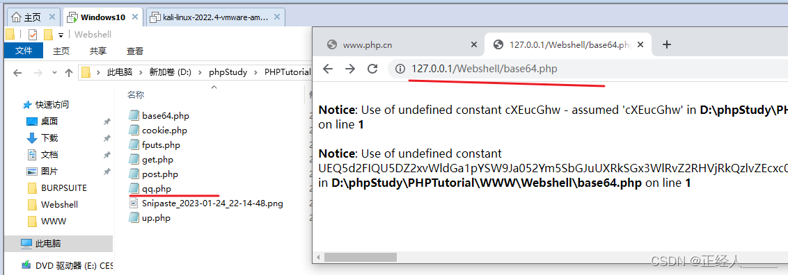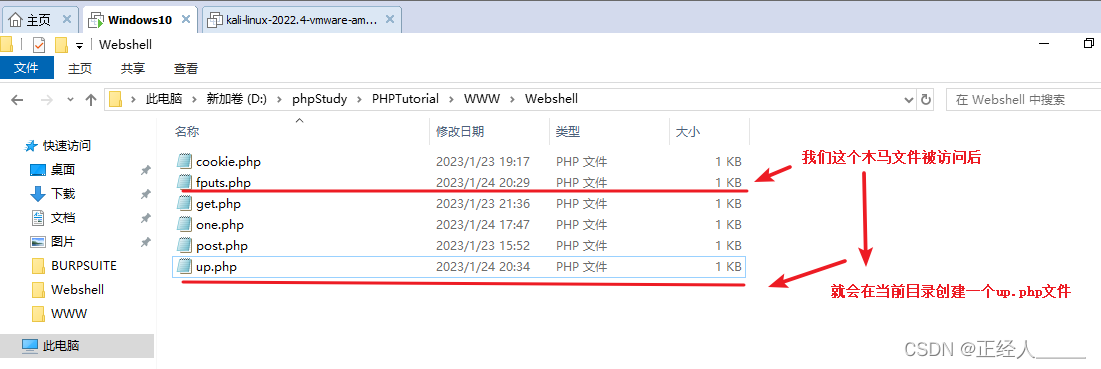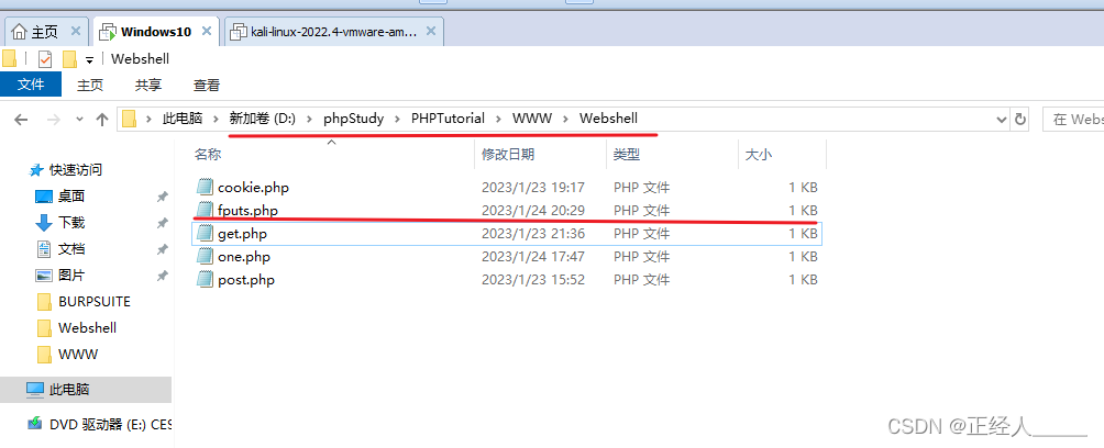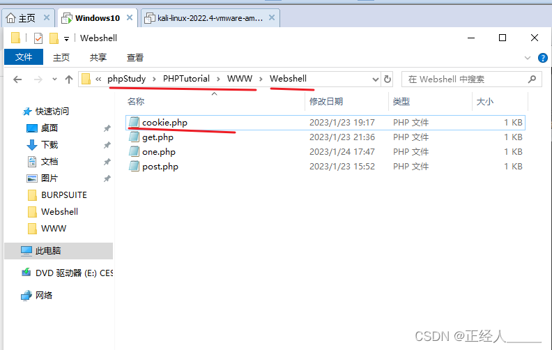 跟上面的步骤一样创建一个PHP文件把代码粘贴进去并访问,建议在WWW文件夹加创建一个名为Webshell的文件夹,把这些有关于 Webshell的后门文件都放在里面进行分类方便以后寻找。
