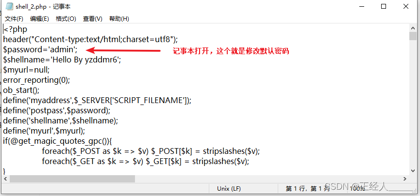 我们真正的目的就是通过一句话木马上传我们的将要生成的up.php文件的内容改成下面的小马代码就好了,我这里为了方便直接将up.php文件的内容改成下面的(代码来源)