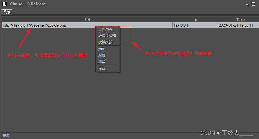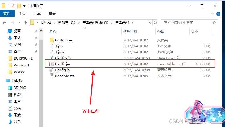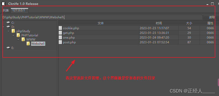 **这里使用[中国菜刀](https://pan.baidu.com/s/1gvTQzWc3T4V4jVT7AQsbCg?pwd=wavp "中国菜刀")打开文件(这个菜刀软件找了一天,下载很多版本都无法正常使用,这个版本是包含源码和可运行文件,很多人写的文章都是只有使用教程没有软件下载链接,你们以后攻击别人电脑被捕了,千万不要说是用我的链接下载的攻击工具)**