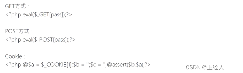 - 一句话木马:代码简短 · 通常只有一行代码 · 使用方便
