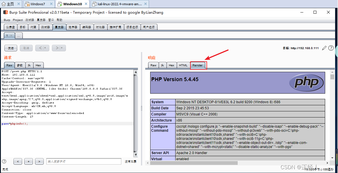 **不过上面这个回显看起来让人头大,我们可以选择“Render”呈现展示那些代码在Web上显示的样子**