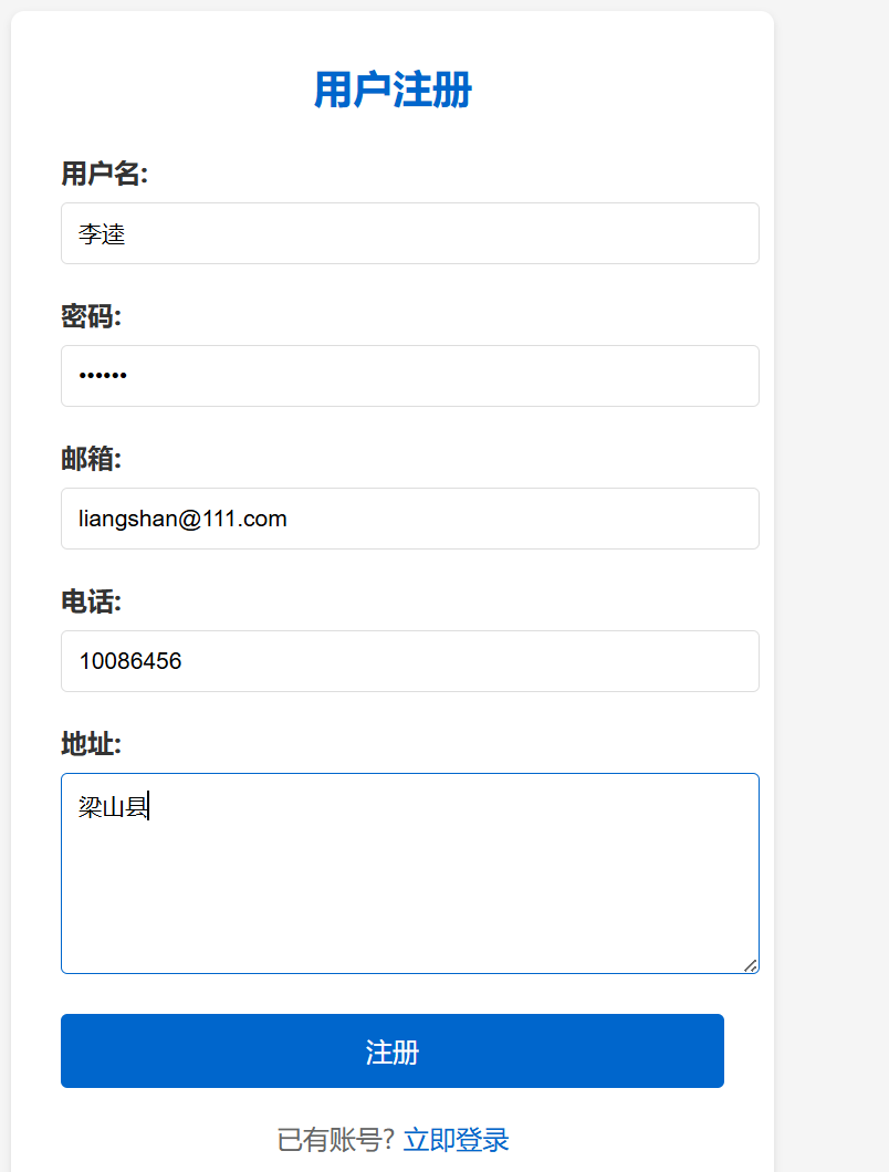 - 个人信息管理:用户可以查看和修改个人信息,包括密码、邮箱、电话和地址等