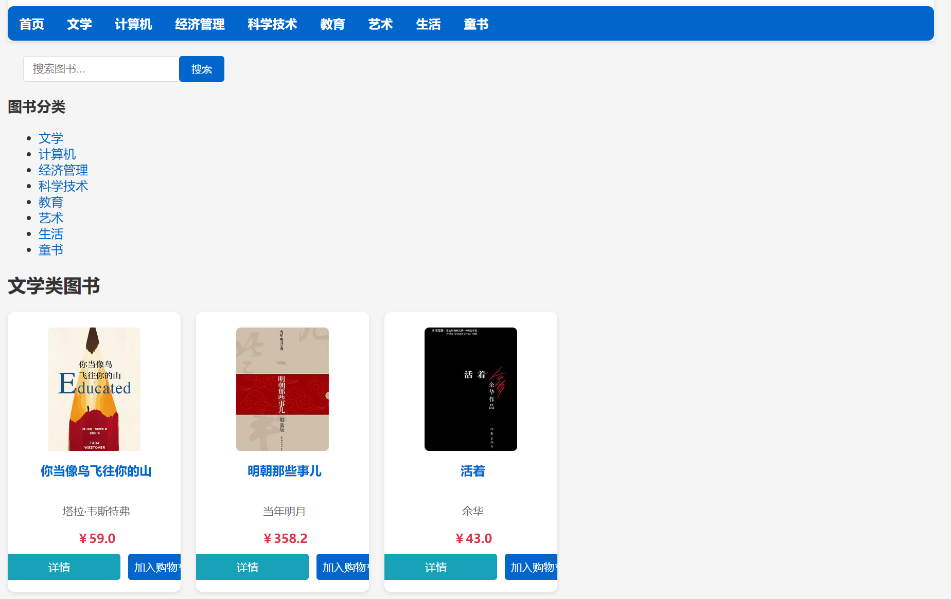 图书模块提供图书的浏览、搜索和详情展示功能: