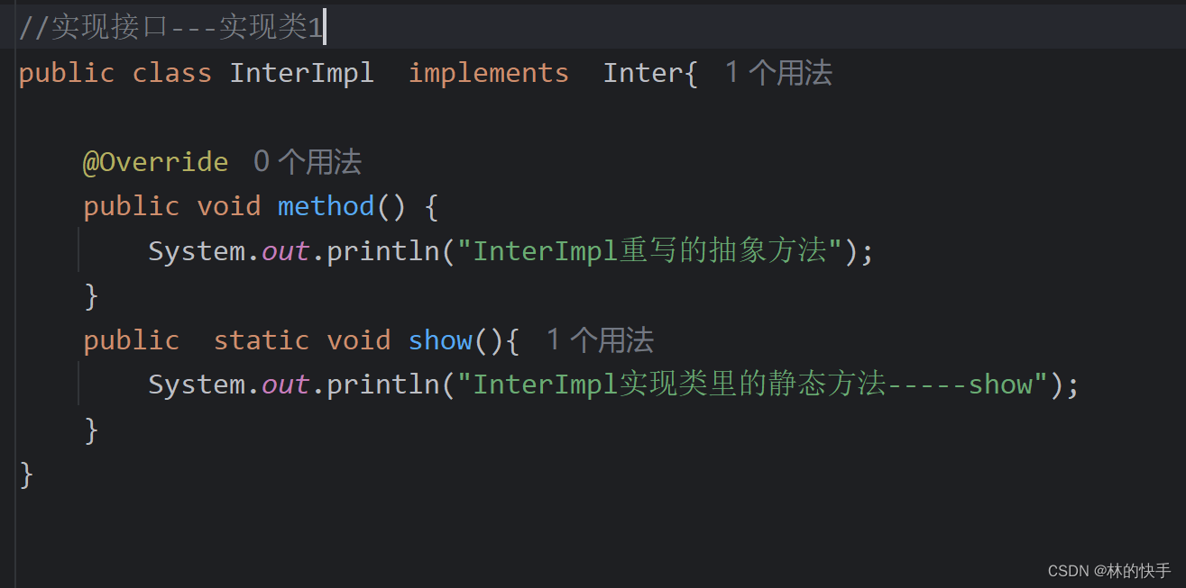 System.out.println("InterImpl实现类里的静态方法-----show");