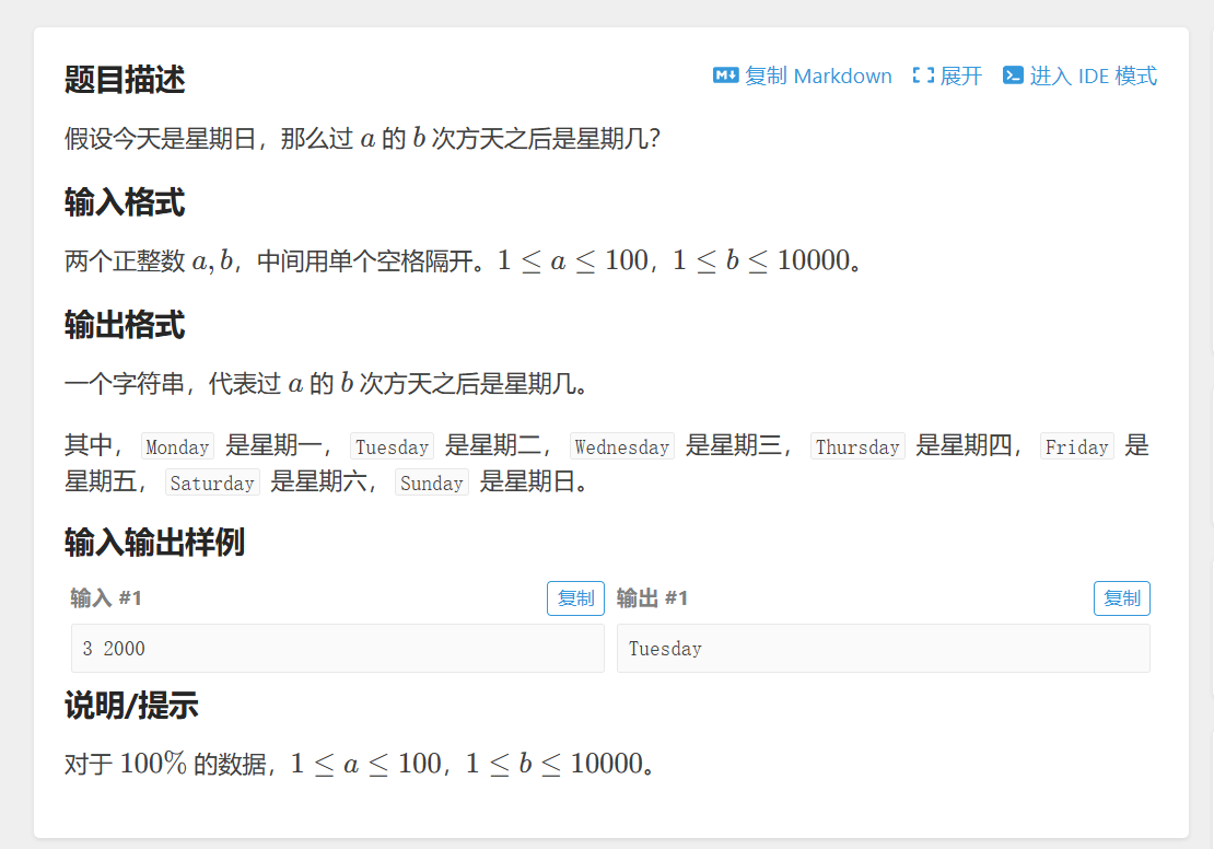 printf("Monday");