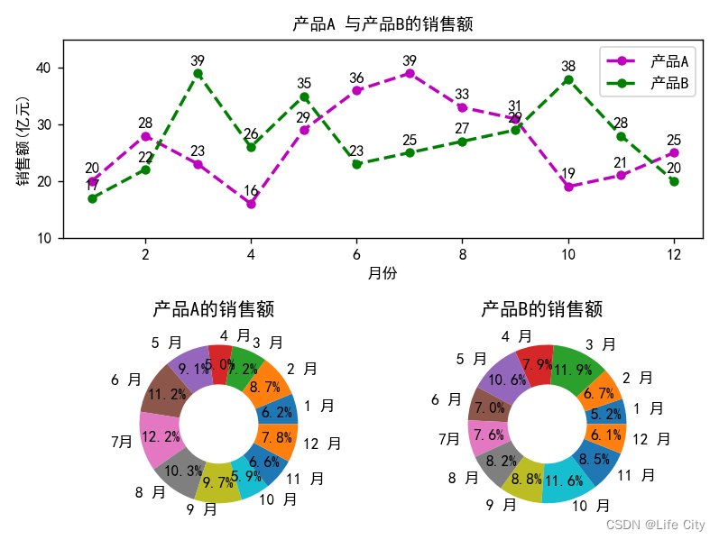 ax1.set_title("产品A 与产品B的销售额", fontsize=11)