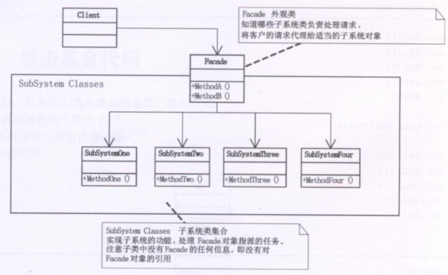 外观模式(Facade):为子系统中的一组接口提供一个一致的界面,此模式定义了一个高层接口,这个接口使得这一子系统更加容易使用。