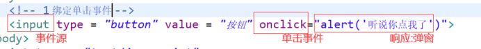 事件:发生什么事?—>单击/双击/键盘/鼠标移动…