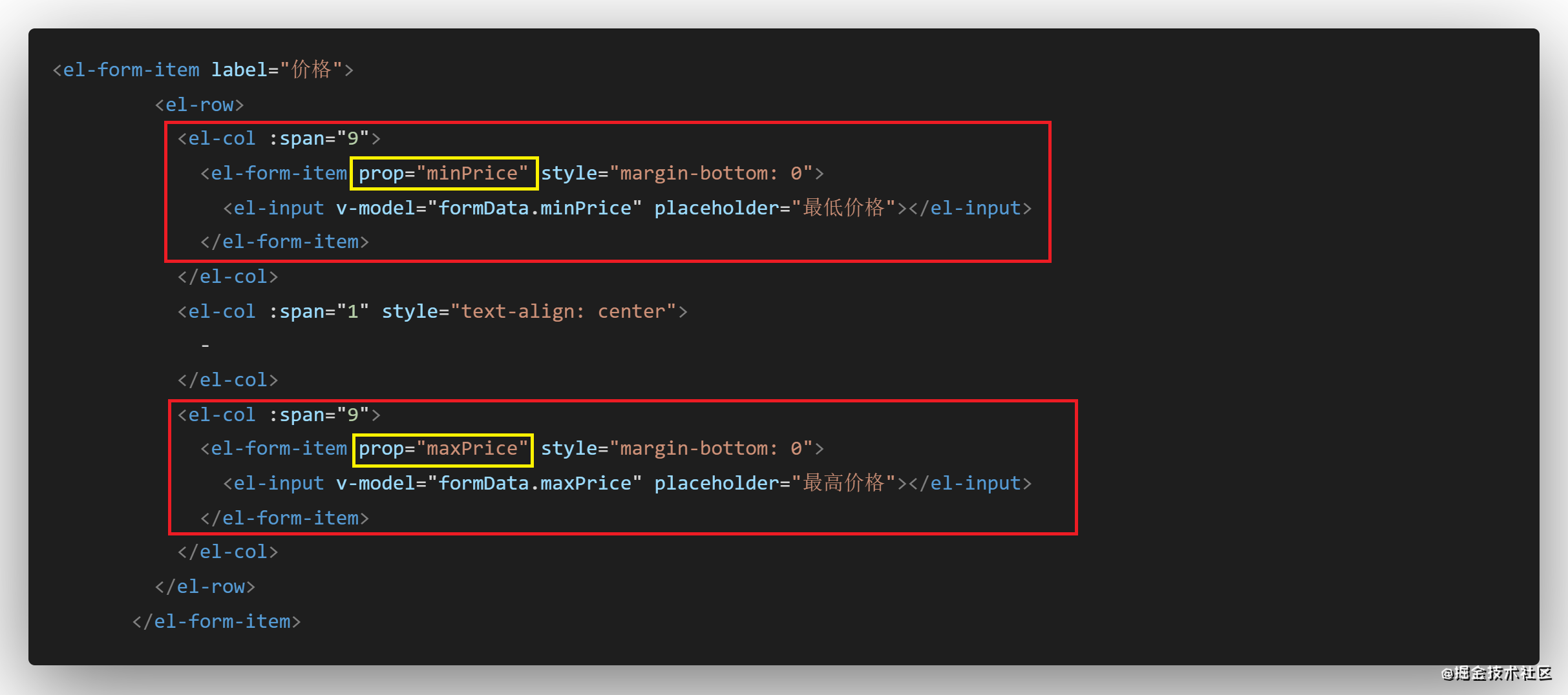 注意看外层el-form-item不写prop,黄色框内的prop单独写,这两是不一样的