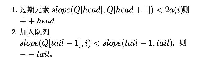 while(head<tail and slope(i,Q[tail-1])<slope(Q[tail-1],Q[tail])) --tail;