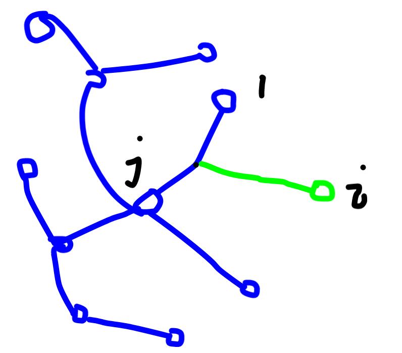i的时候,又如何更新答案呢?我们发现,我们要把这根树上新出来的枝条接到某个老的枝条上。如图: