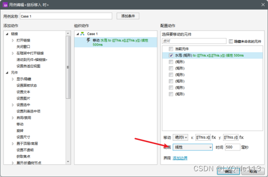 添加动作里选择到“移动”,然后勾选到我们的水泡矩形,移动选择“绝对定位”。