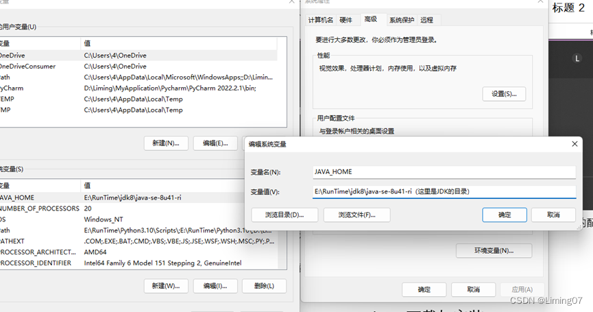 - 配置JDK目录,为了防止有过多的异常情况,这里将JAVA_HOME也一并配置