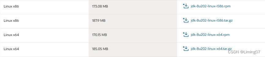 在JDK下载官网,可选择不同的版本,要注意,JDK在Linux与Windows中是不同的