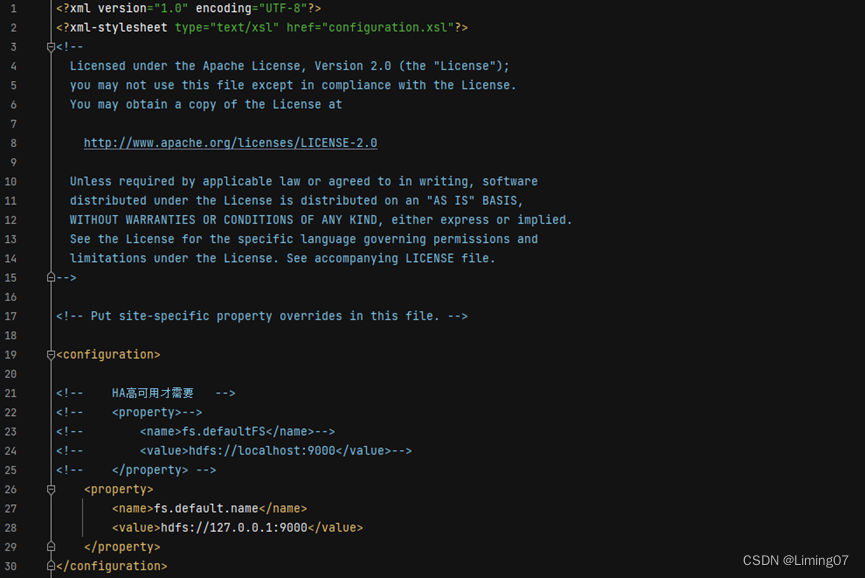 - Linux:vim $HADOOP_HOME/etc/hadoop/core-site.xml