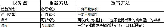 - (3)方法重载是一个类的多态性表现,而方法重写是子类与父类的一种多态性表现。