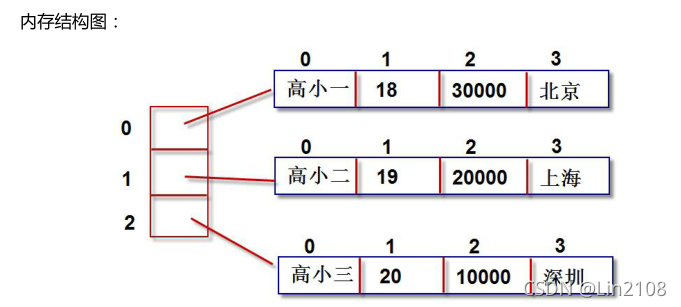 ["林一",19,200,"北京"],