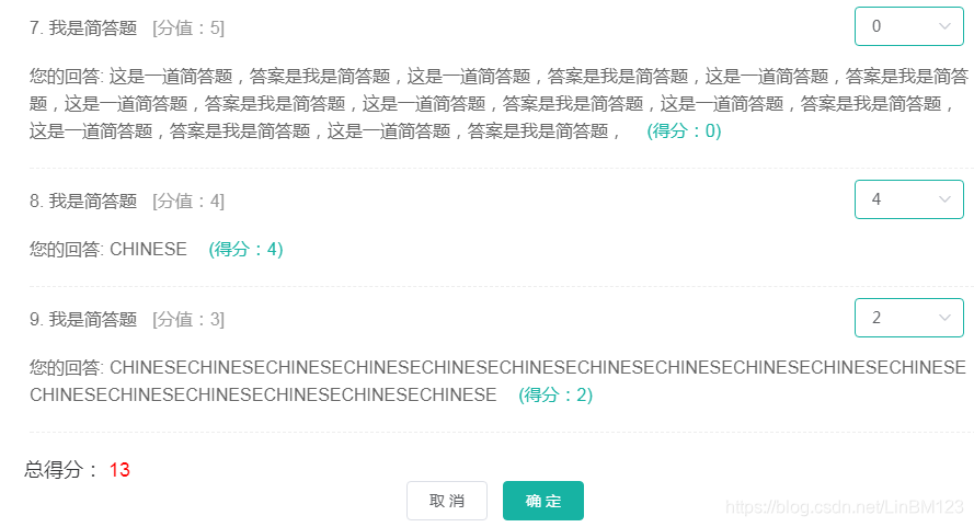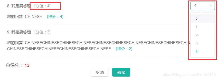// 题目评分分数列表
