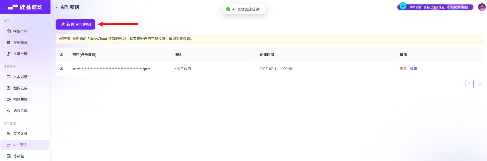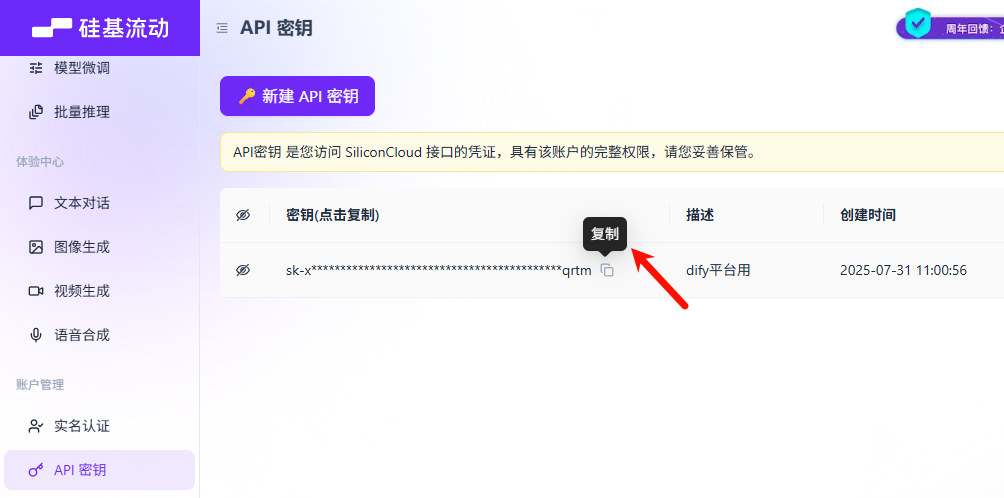 step1 复制硅基流动官网上刚刚创建的密钥。