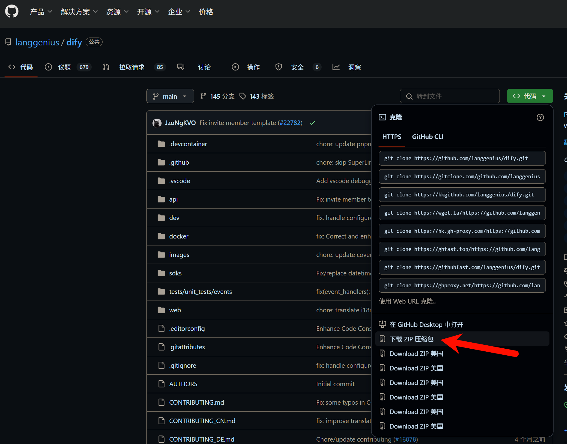 将下载得到的dify-main.zip 文件上传到服务器工作目录。