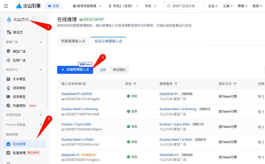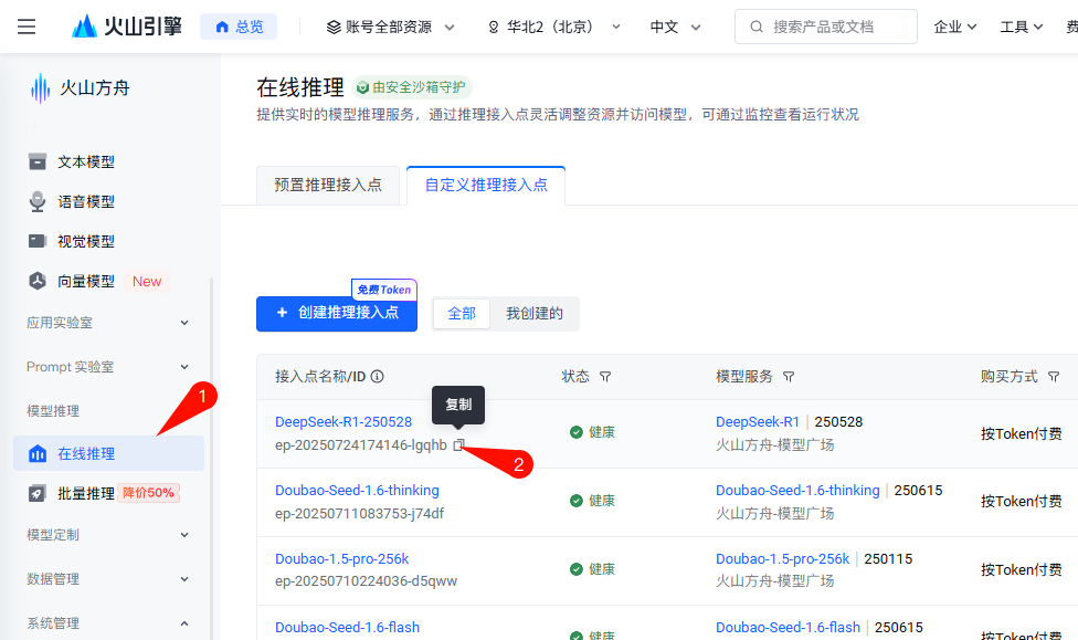 step1 复制火山方舟官网上刚刚创建的密钥和某一个模型的推理接入点 ID。
